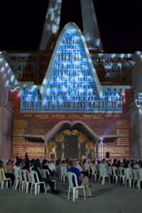 RDÉ DIGITAL, LA ALTAGRACIA.- Larimar Films, a través de Rueda Cine, estrenó “El Custodio de la Virgen”, documental de Elsa Turull de Alma, en la Basílica Catedral Nuestra Señora de la Altagracia. La proyección fue la primera al aire libre realizada en este emblemático recinto religioso, uniendo cine, fe y devoción en un evento histórico para el cine dominicano.